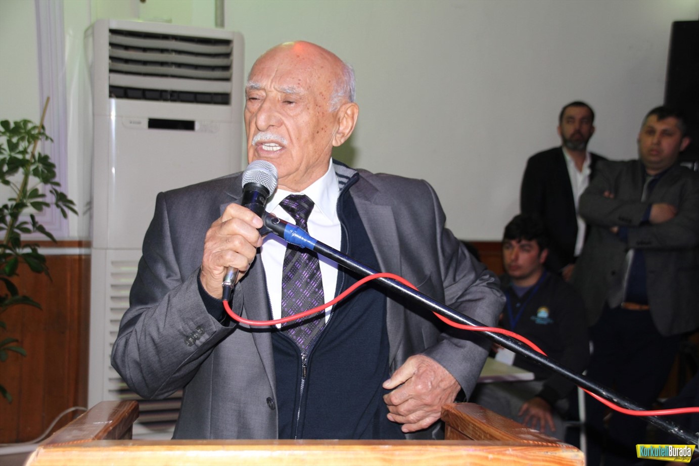 Ercan Köroğlu, konuşmasında mevcut Başkan Emirdağlı ile ithamlarda bulunurken, siyasetin içinden gelmesi sebebiyle olsa gerek toplantıdakilerden karşılık aldı.