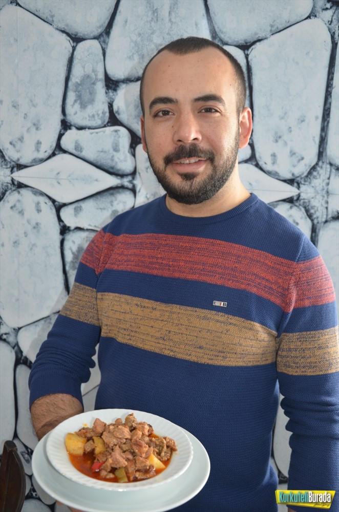 Sıvı yağ ve tereyağı ile eti ağır ateşte uzunca kavururuz.