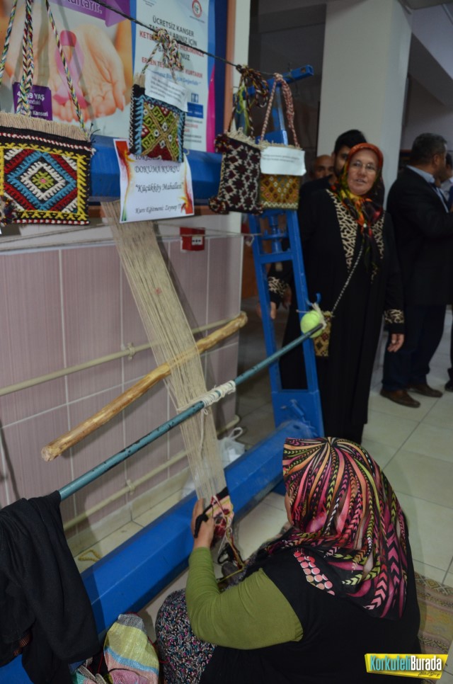 Sergi açılış kurdelesini İlçe Milli Eğitim Müdürü İsmet Yıldız, Korkuteli AK Parti İlçe Başkanı İlhami Yıldıran, Korkuteli CHP ilçe Başkanı Yıldıray Çıldır ve Orman İşletme Müdürü Hülya Güney protokol üyeleri ile birlikte kesti. Kursiyerler tarafından hazırlanan birbirinden güzel el emeği ürünlerin sergilendiği salondaki çalışmalar büyük beğeni gördü. Protokol üyeleri tüm stantları gezerek usta öğretici ve kursiyerleri tebrik ettiler. Gezi sonrasında ikram edilen un helvasının tadına baktılar.