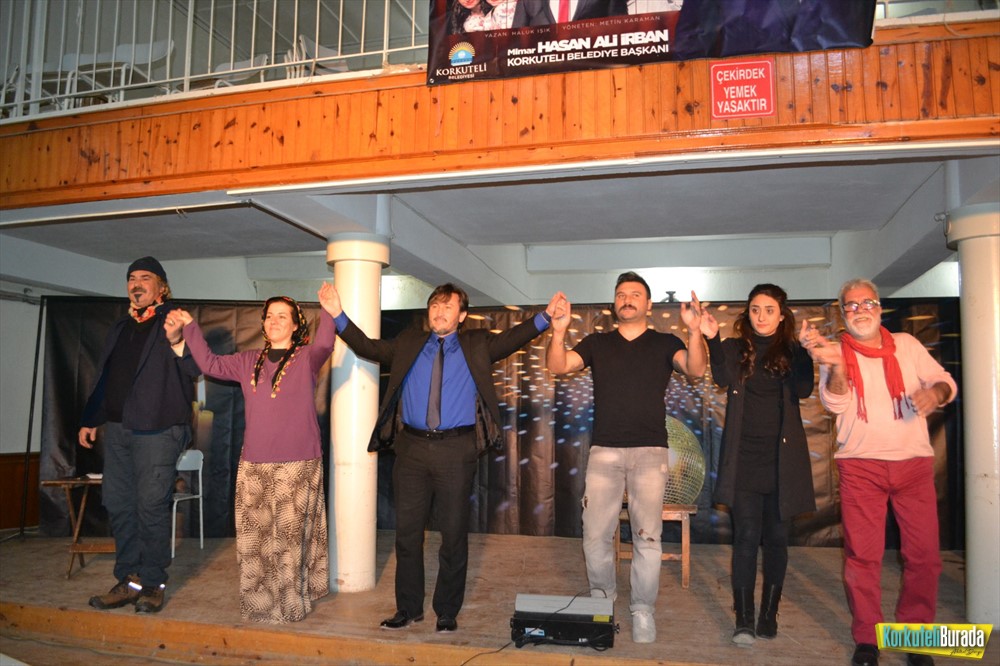 Tiyatro için uygun olmayan bir ortamda böyle bir hizmete verdikleri için üzüntü yaşadığını ifade eden Başkan İrban, “ Sevgili öğrenciler, İnşallah Allah nasip ederse önümüzdeki dönemde Korkuteli’ne yakışır çok amaçlı içinde tiyatro salonu da olan bir kültür merkezi, yapmak boynumuzun borcu olsun. Bunun sözünü siz gençlere veriyorum” dedi. Salonda bulunan öğrenciler başkanın bu sözünü ayağa kalkarak uzun uzun alkışladılar.