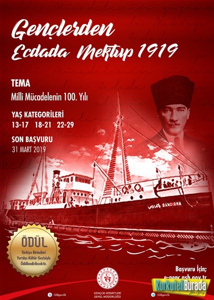 Gençlik ve Spor Bakanlığı, milli mücadelenin 100. Yılında ‘Gençlerden Ecdada Mektup 1919’ yarışması düzenliyor.