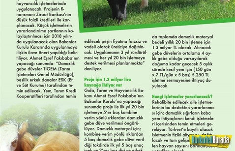 ■ Kapasitesi düşük yerli besi yapan küçük işletmeler desteklenecek.